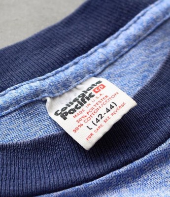【80s Collegiate Pacific Trim T-Shirts】New In.猛暑ご続く中、気分を涼しくしてくれる綺麗なメランジブルーのヴィンテージTシャツが入荷しております。80年代の『Collegiate Pacific』ボディを使用した柔らかく心地良い肌触りが特徴です。50:50のコットンポリエステル素材でサラッとしているので暑さが続くこれからのシーズンにも最適なヴィンテージTシャツだと思います。控えめに入ったプリントも好印象の1枚です。 詳しくはホームページをご覧ください。オンラインショップにも掲載致しました。是非。#vintagetee #vintagetshirt #vintageclothing #madeinusa #fortgeneralstore #滋賀 #草津#セレクトショップ#thenorthfacepurplelabel #orslow #nanamica#kaptainsunshine #stillbyhand #resolute #avontade #tonytaizsun #yellowrat #vintage #deadstock #vans  #descente#descenteallterrain#resolute710#vintagemilitary#rainbowsandals#jillplatner#sols#ootd#vintageclothing