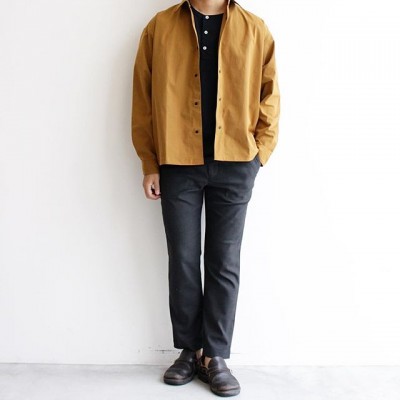 【FEW FABRICS】Back Tac Snap Shirts.New  In!!!・「人がもつ雰囲気を引き出すモノづくり」をコンセプトに、ミリタリー・ワーク・スポーツ等、様々な要素をデザインベースに、程よいリラックス感と上質な品を持ち合わせたブランド【FEW FABRICS】より待望の秋冬アイテムが入荷致しました。・こちらのシャツは個人的にも楽しみにしていた1枚でヴィンテージのジャケットをベースにワイドで野暮ったさのあるシルエットをイメージソースに、袖幅と身幅をたっぷりと取った、特徴的なシルエットが魅力です。背中にも大きくタックをとってあり、シャツ自体に程よいボリョーム感があり、今が気分のとても良いシルエットに仕上がっています。身幅と着丈のバランスもよく、程よく肩の落ちるルーズなシルエットながら、着丈が短めに設定され、野暮ったさの無い、とても品の良い1枚となっています。マットな光沢感のあるハリのある素材ですので秋はカットソーの上から、冬にはニットの上からも羽織って頂けます。とてもシンプルなデザインですが、着て頂くとシルエット、縫製素材にまで拘ったクールな1枚だと実感して頂けます。詳しくホームページにてご紹介しております。オンラインショップにも掲載致しました。是非、ご覧下さい。・#fewfabrics #madeinjapan #fortgeneralstore#滋賀 #草津#セレクトショップ【取り扱いブランド】#thenorthfacepurplelabel #orslow #nanamica#kaptainsunshine #stillbyhand #resolute #avontade #tonytaizsun #yellowrat #vintage #deadstock#vans#resolute710#vintagemilitary#vintageclothing是非、お試し頂きたい1枚です。