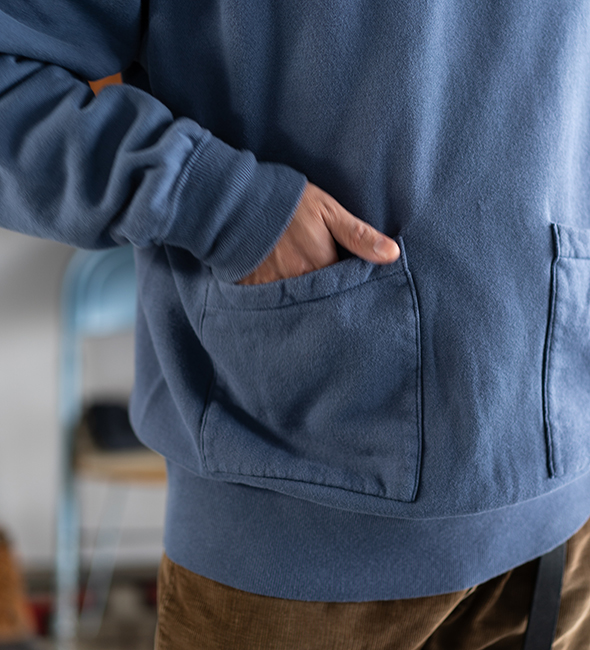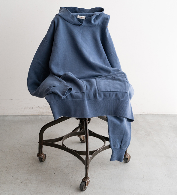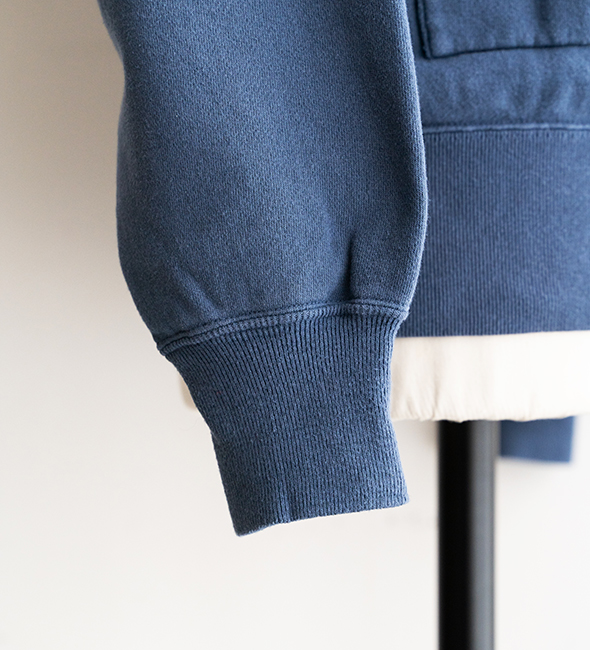 『Separate Pocket Hoodie』を特別にヴィンテージ加工を入れてもらいました。抜群のフェードネイビーです。